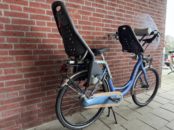 In één keer klaar voor alle ritten met je kids! Deze oerdegelijke Rivel moederfiets wordt geleverd als complete set inclusief twee Yepp-kinderzitjes (voor en achter). De fiets is volledig nagekeken, technisch 100% in orde en biedt de stabiliteit en ruimte die je als ouder nodig hebt.